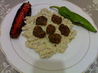 YAPILIŞI:Kıymanın içine soganı rendelip, ekmek içleinide ufalayıp ekliyoruz.sıvıyağ, tuz karabiberi,maydonuzu ekeyip iyice yoğuruyoruz.küçük yassı köfteler yapıp kızartıyoruz.Beğendi için;yağ ile unu rengi dönene kdr kavurup üzreine azar azar sütü karıştırarak ilave edip göz göz olunca ocağı kapatıyoruz.közlenmiş patlıcanlarıda küp küp doğrayıp beşamel sosun içine ilave edip karıştırıyoruz .servis ederken begendiyi yayıp üzerine köfteleri koyup üzerinede toz biber ile yağı yakıp sunabilirsiniz..AFİYET OLSUN..